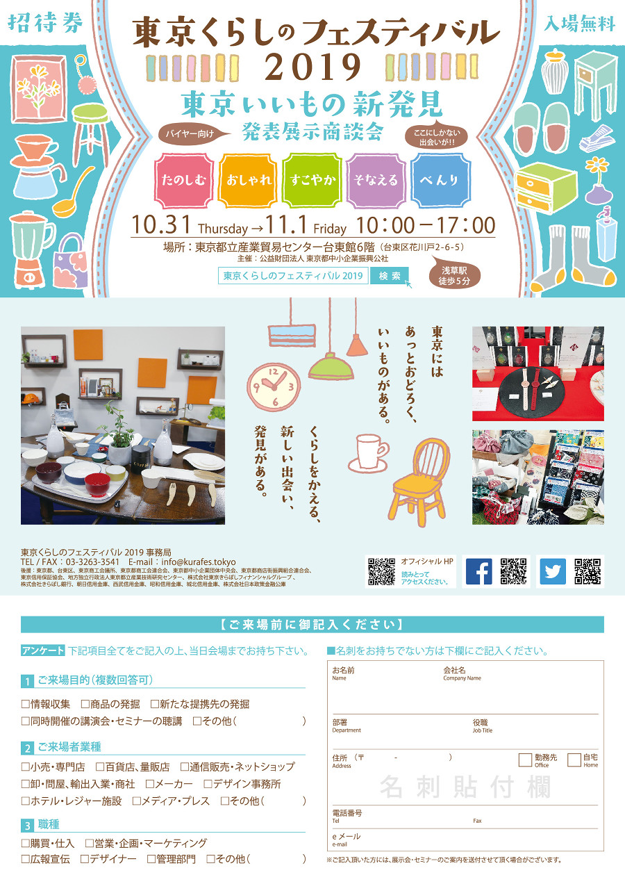 東京都中小企業振興公社 東京くらしのフェスティバル 招待状