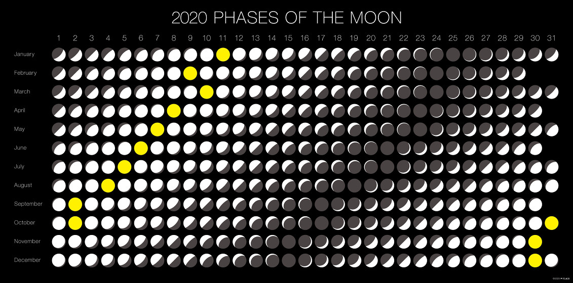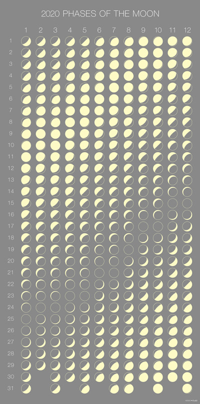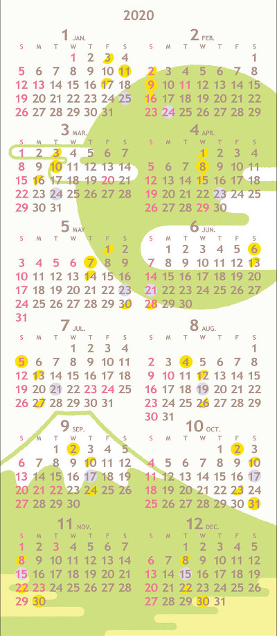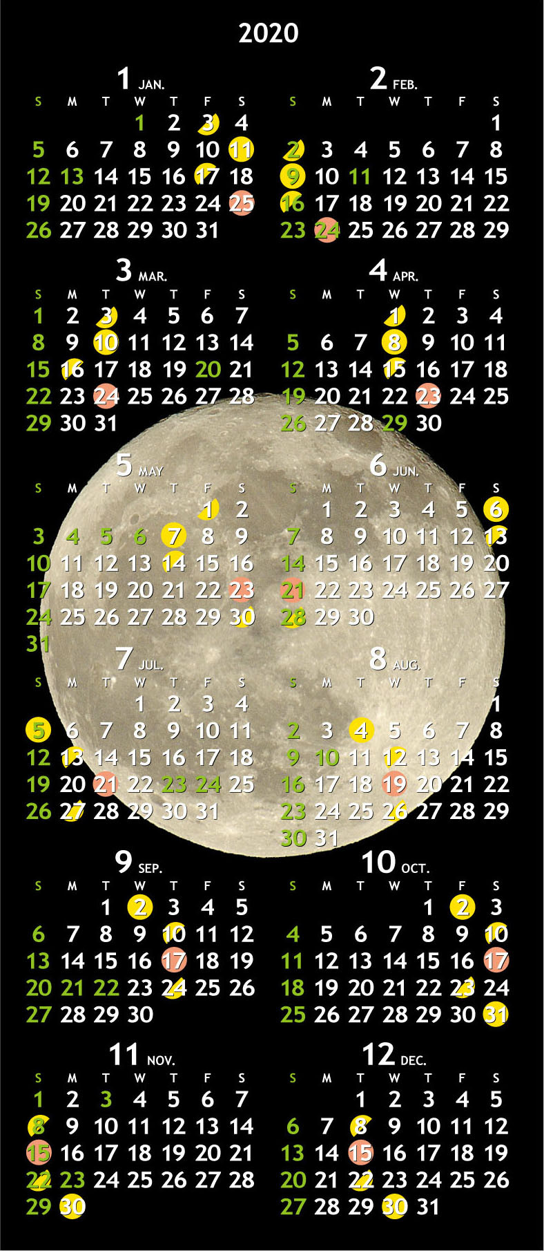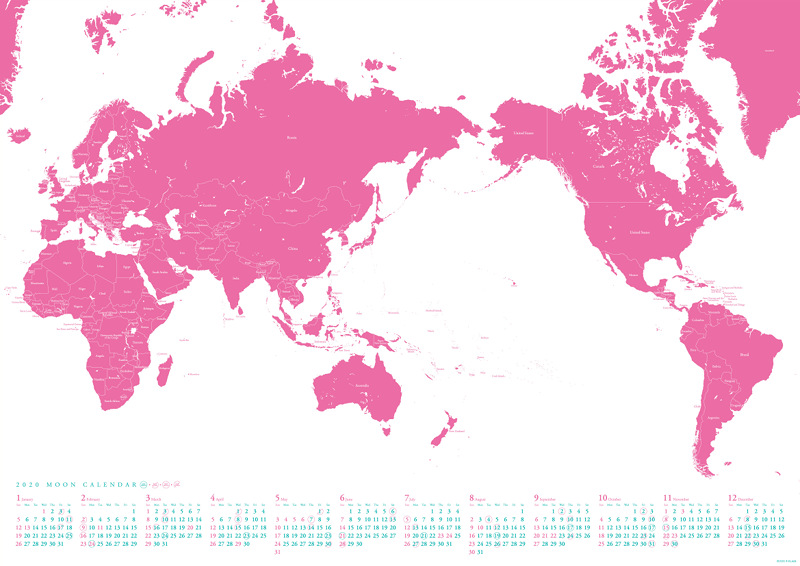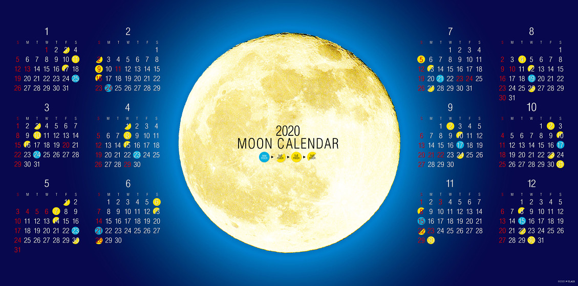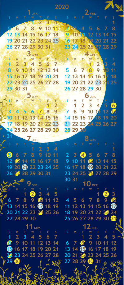 ポスタータイプの年間カレンダーです。 カレンダー部分は月の満ち欠け(新月・上弦・満月・下弦)を確認することができます。